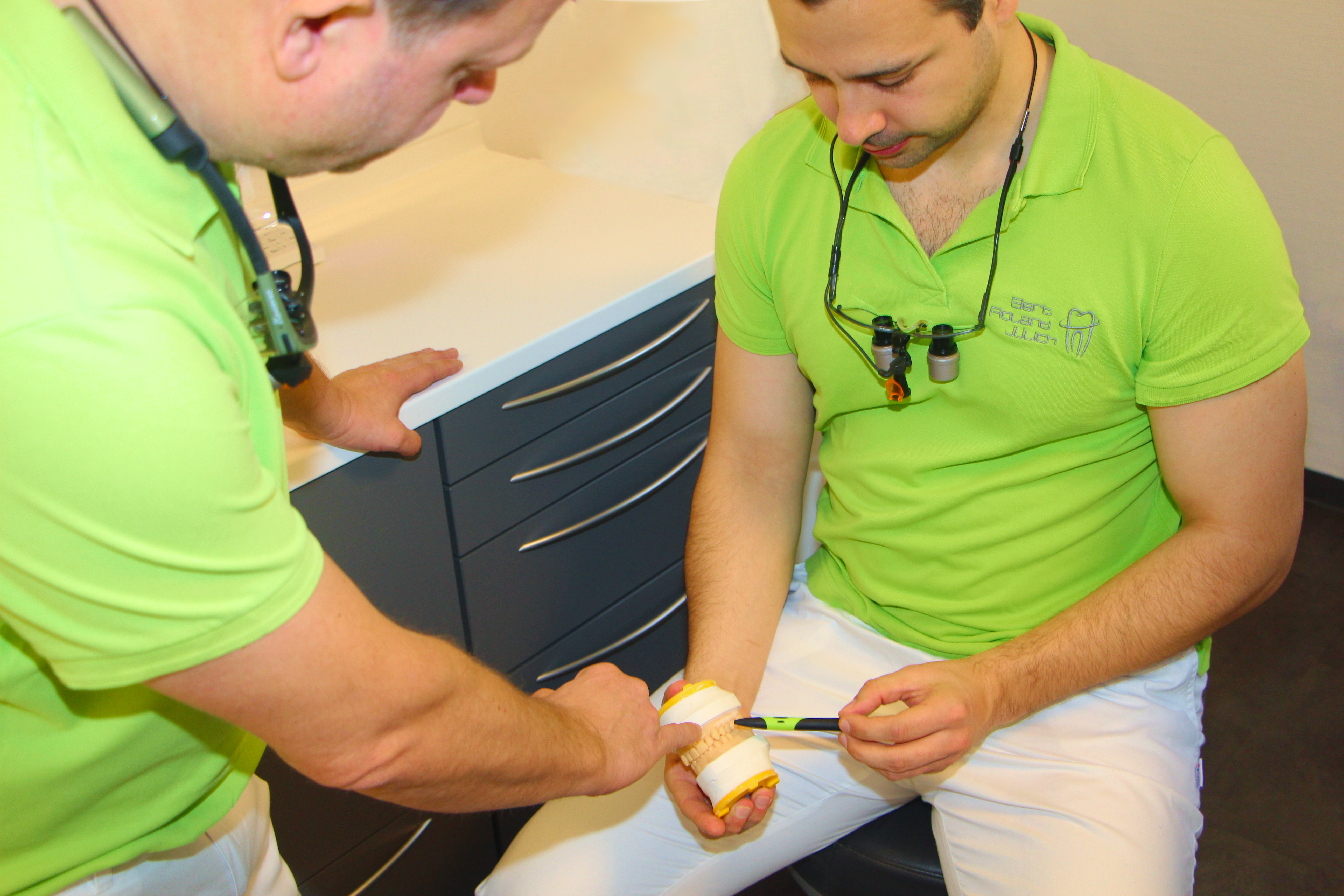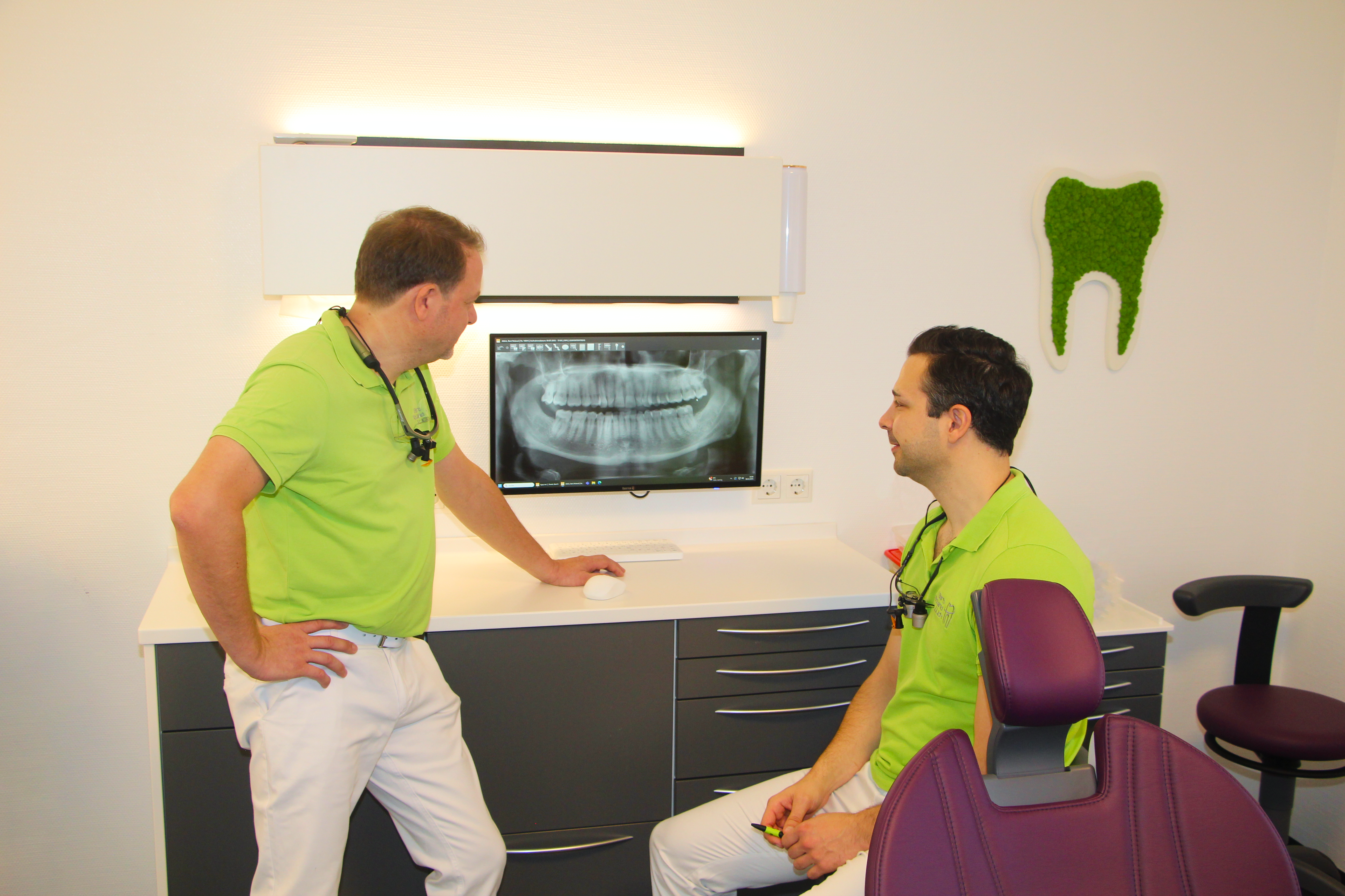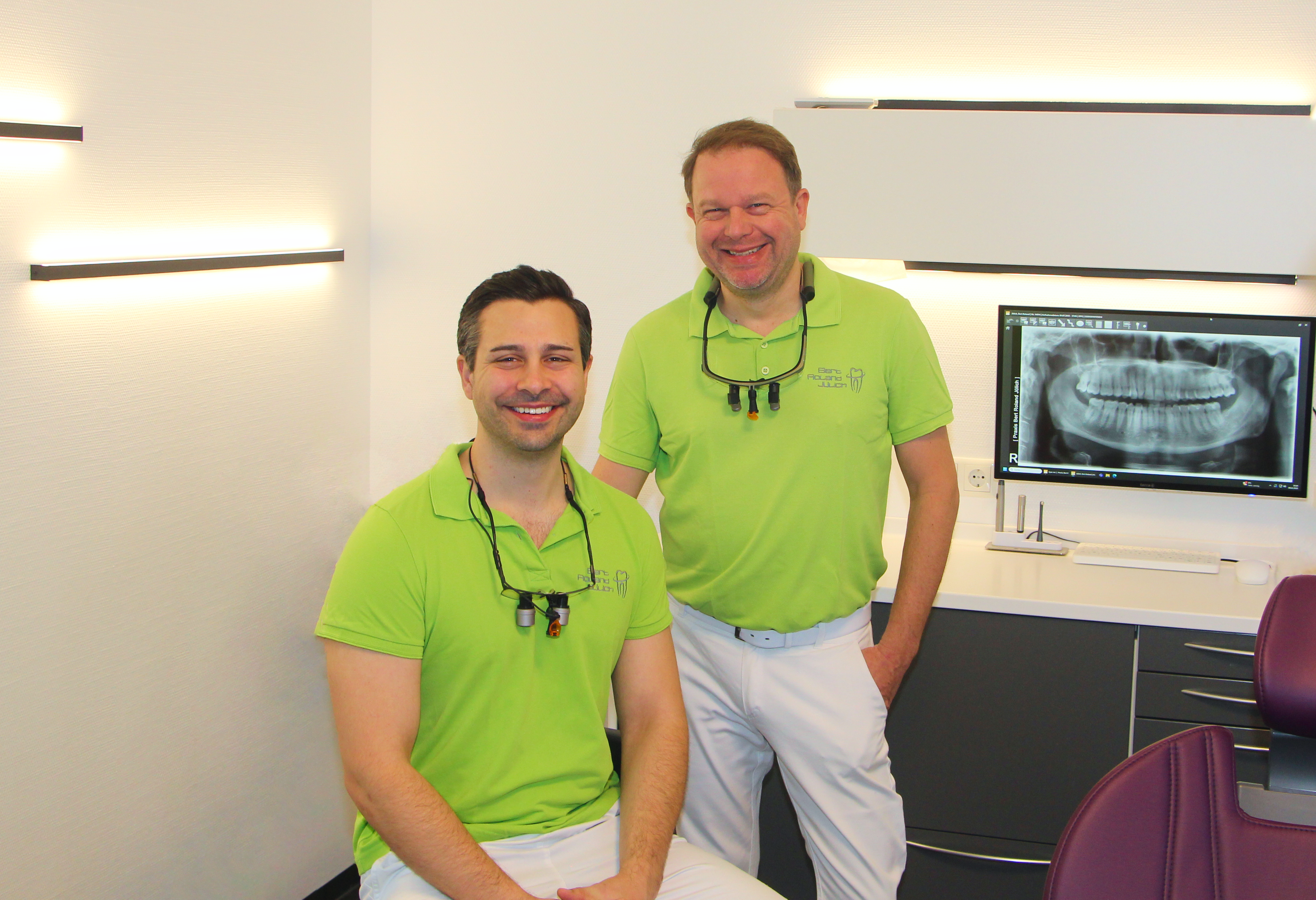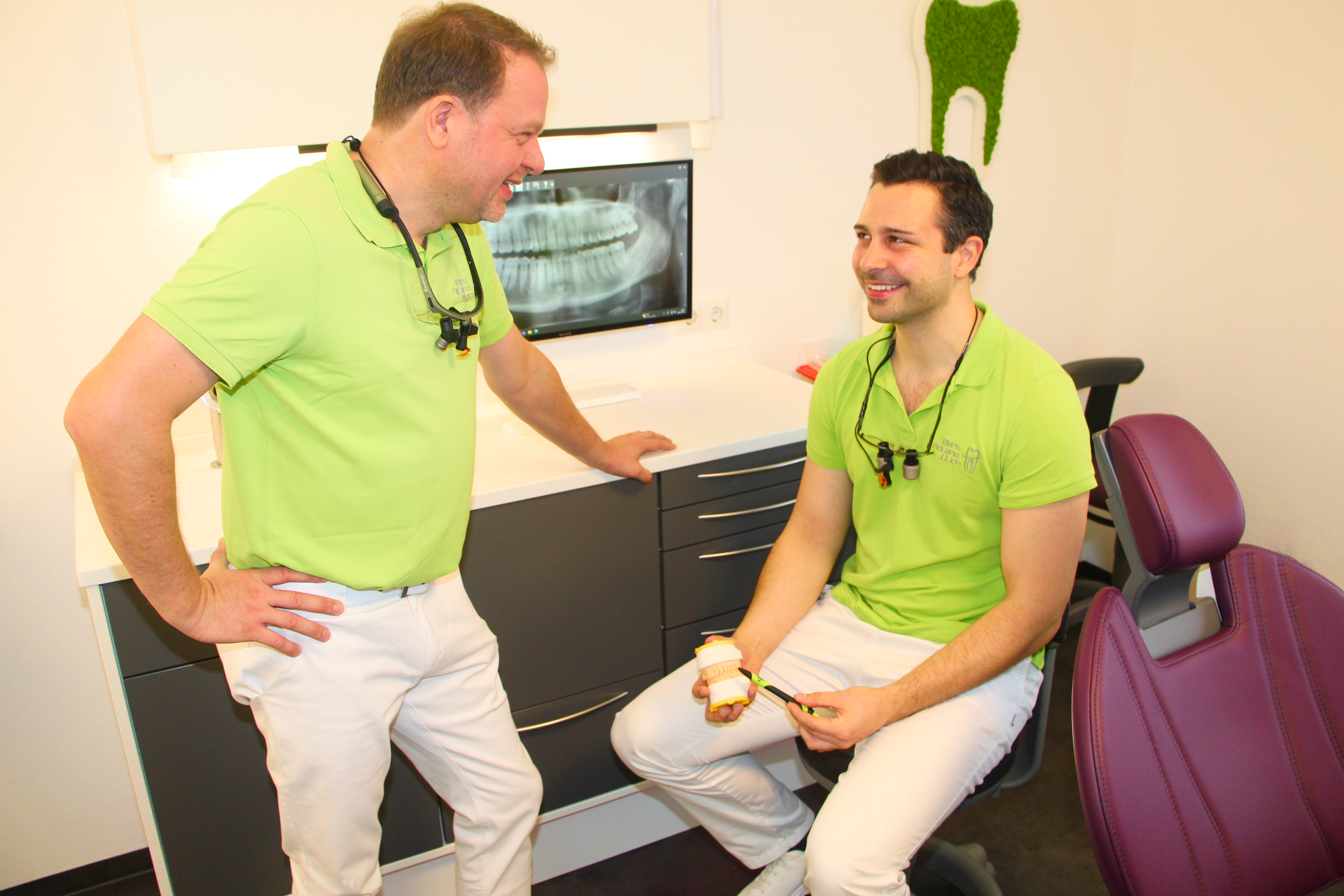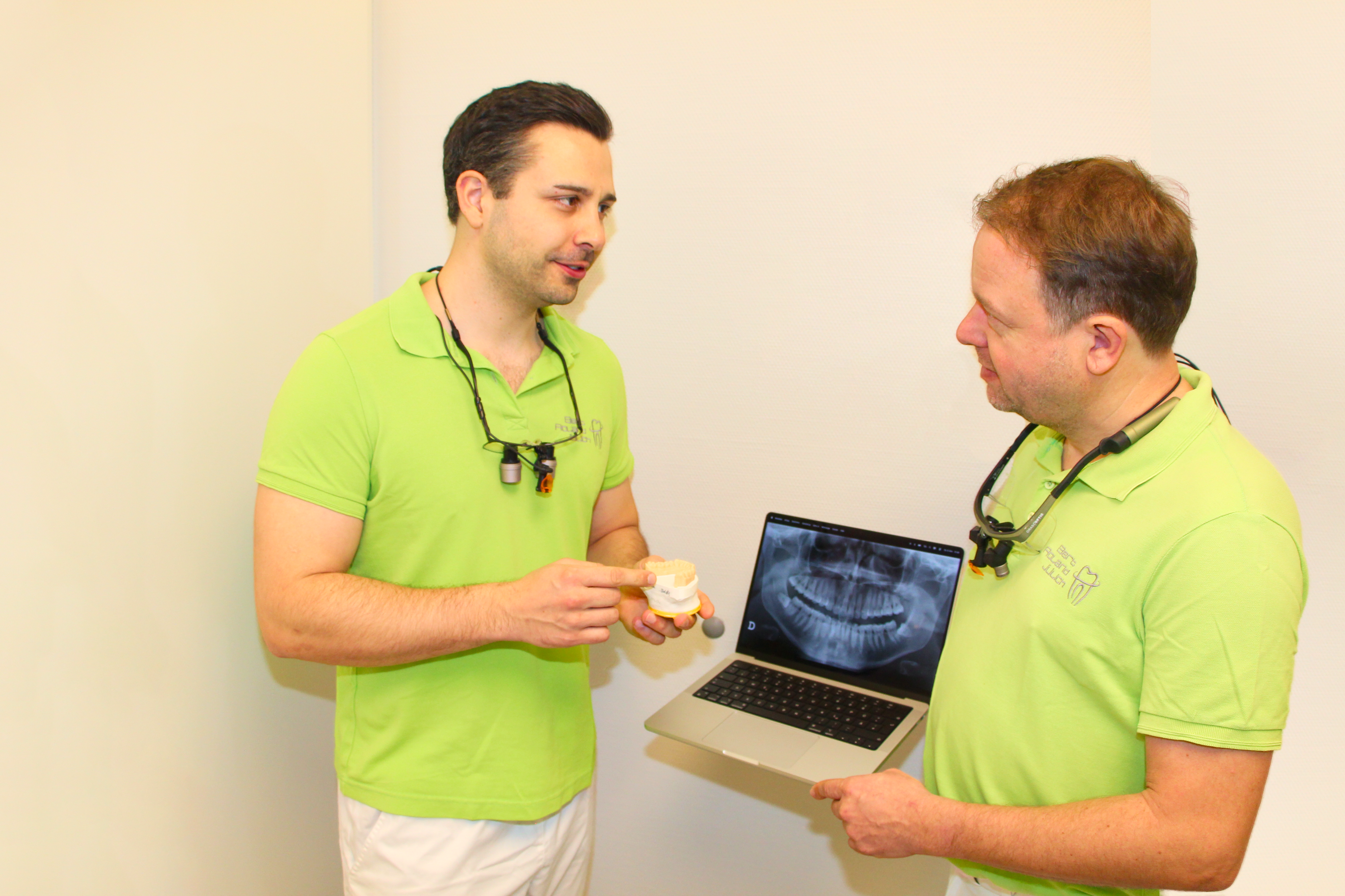 In unserer Praxis verstehen wir Zahnmedizin als Teamsport. Deshalb steht die enge fachliche Zusammenarbeit zwischen uns beiden an erster Stelle. Wir beraten uns regelmäßig zu komplexen Fällen, tauschen uns über die besten Therapieansätze aus und nutzen das Vier-Augen-Prinzip, um Ihnen die sicherste Diagnose zu gewährleisten.
